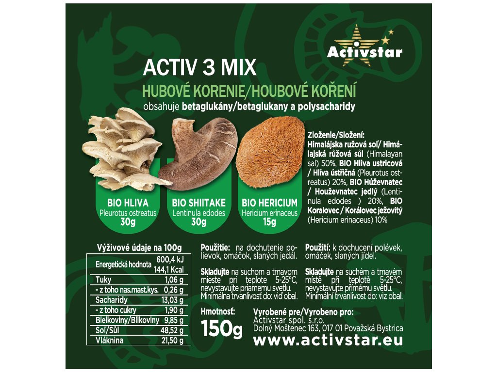 Směs koření Activ 3 Houby 150 g Soutěž o běžecký pás zdarma
