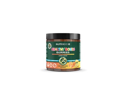 Ovocné gumové cukríky bez cukru s vitamínom D na podporu zdravých kostí, zubov a vstrebávania vápnika aj fosforu. 🍬🦴