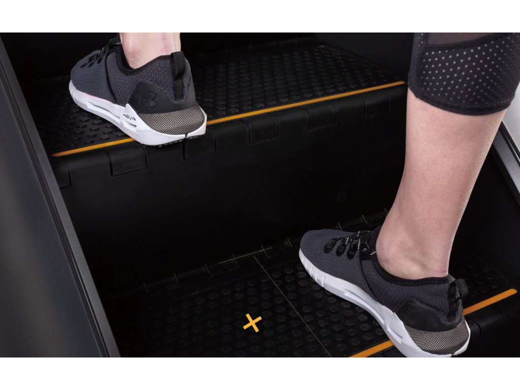 Dodatočný stacionárny schodík uľahčuje nastupovanie a vystupovanie. Široká zóna je označená protišmykovým vzorom a oranžovými indikátormi pre rýchlu identifikáciu tréningovej zóny.
